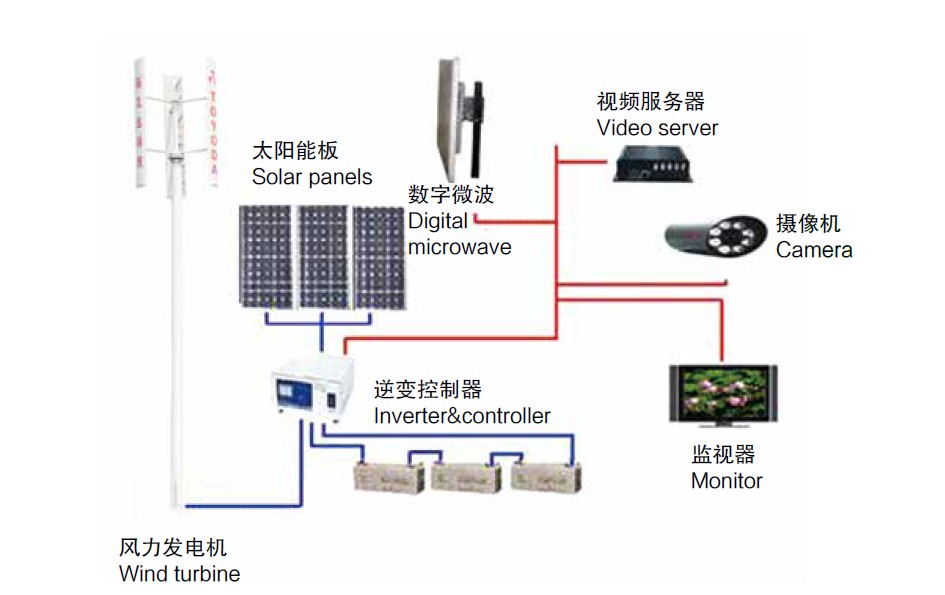 风光互补系统是独立电源系统,不需要铺设外场线缆,减少了被盗的可能。