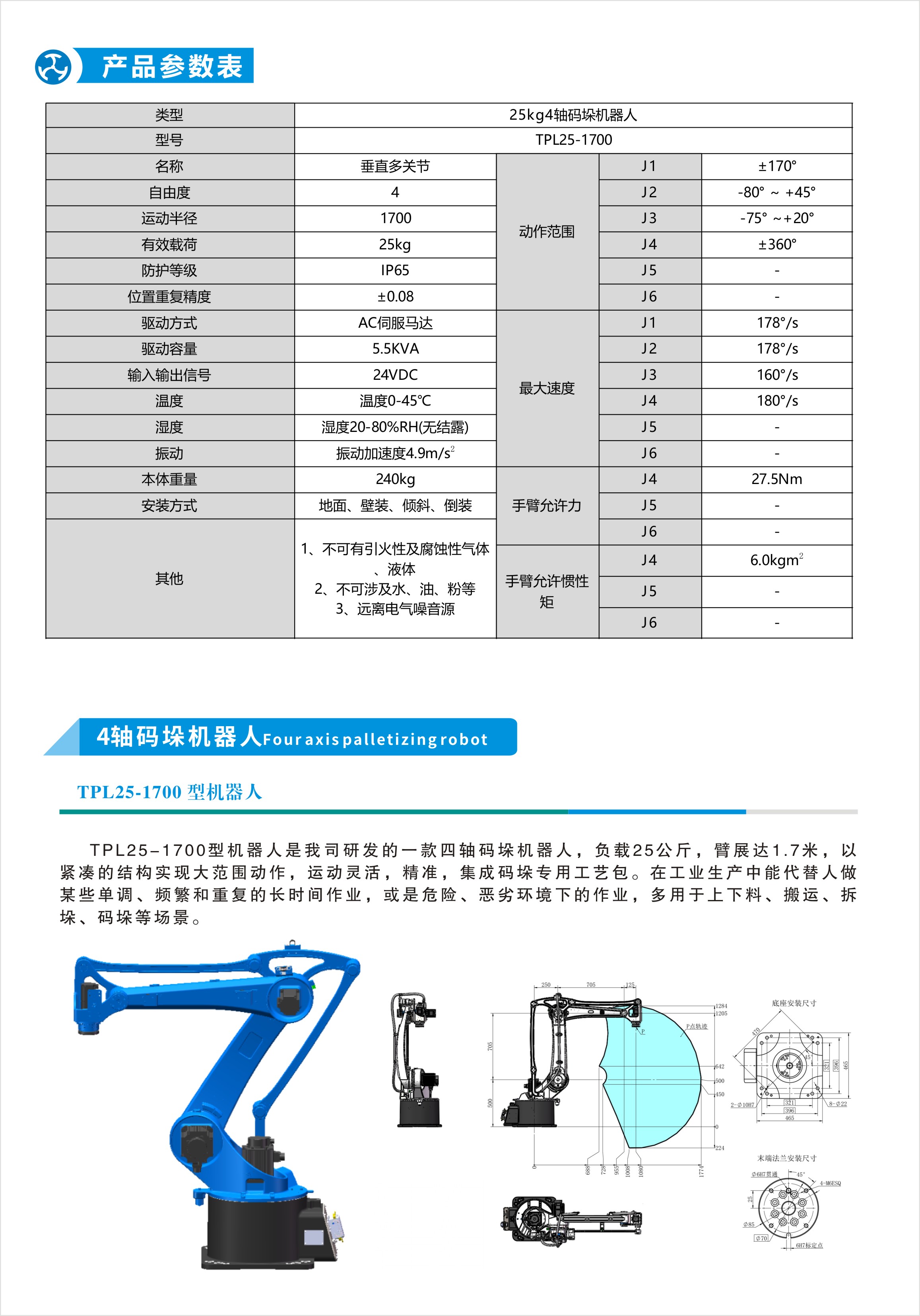 TP25-1700型4轴码垛机器人