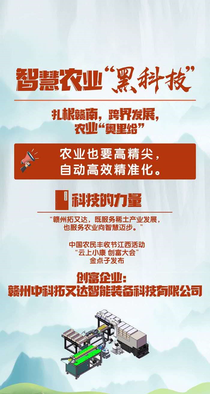 On September 22, the third Chinese Farmers Harvest Festival, Zishan Se-rich Vegetable Industrial Park in Yudu County, our province launched the 2020 Chinese Farmers Harvest Festival in Jiangxi. Zhongke Tuoyouda was invited to participate in the agricultural equipment display link in the main venue. This time, the display is the fruit screening and boxing intelligent equipment independently developed and designed by the company.