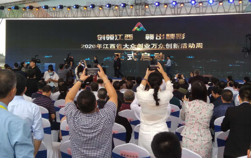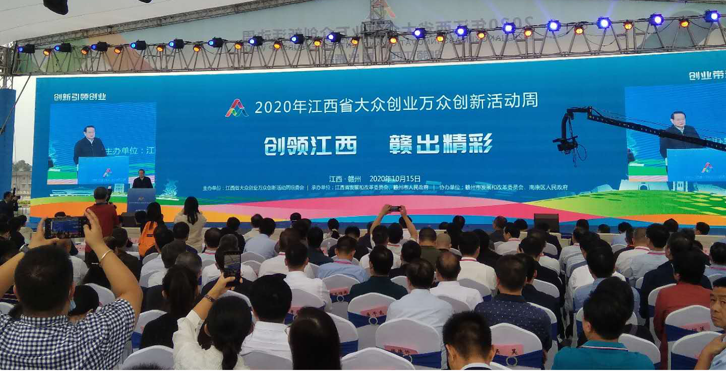 在收听收看2020年全国大众创业万众创新活动周“云上”启动仪式后,“创领江西,赣出精彩”2020年江西省双创周活动启动仪式在赣州市南康区家居特色小镇隆重举行。省长易炼红出席并讲话,省委副书记、赣州市委书记李炳军出席。