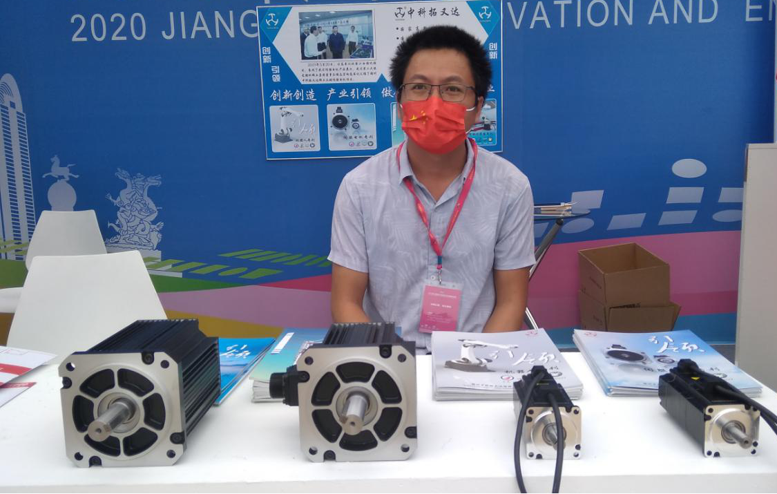 仪式启动前,江西省委副书记、省长易炼红,江西省委副书记、赣州市委书记李炳军等领导来到赣州中科拓又达智能装备科技有限公司双创活动的展柜前,仔细聆听了董事长赵欣的创业故事。对公司稀土永磁电机及其应用的产业链的发展给予充分肯定,对拓又达在疫情期间能抓住发展机遇表示赞赏。